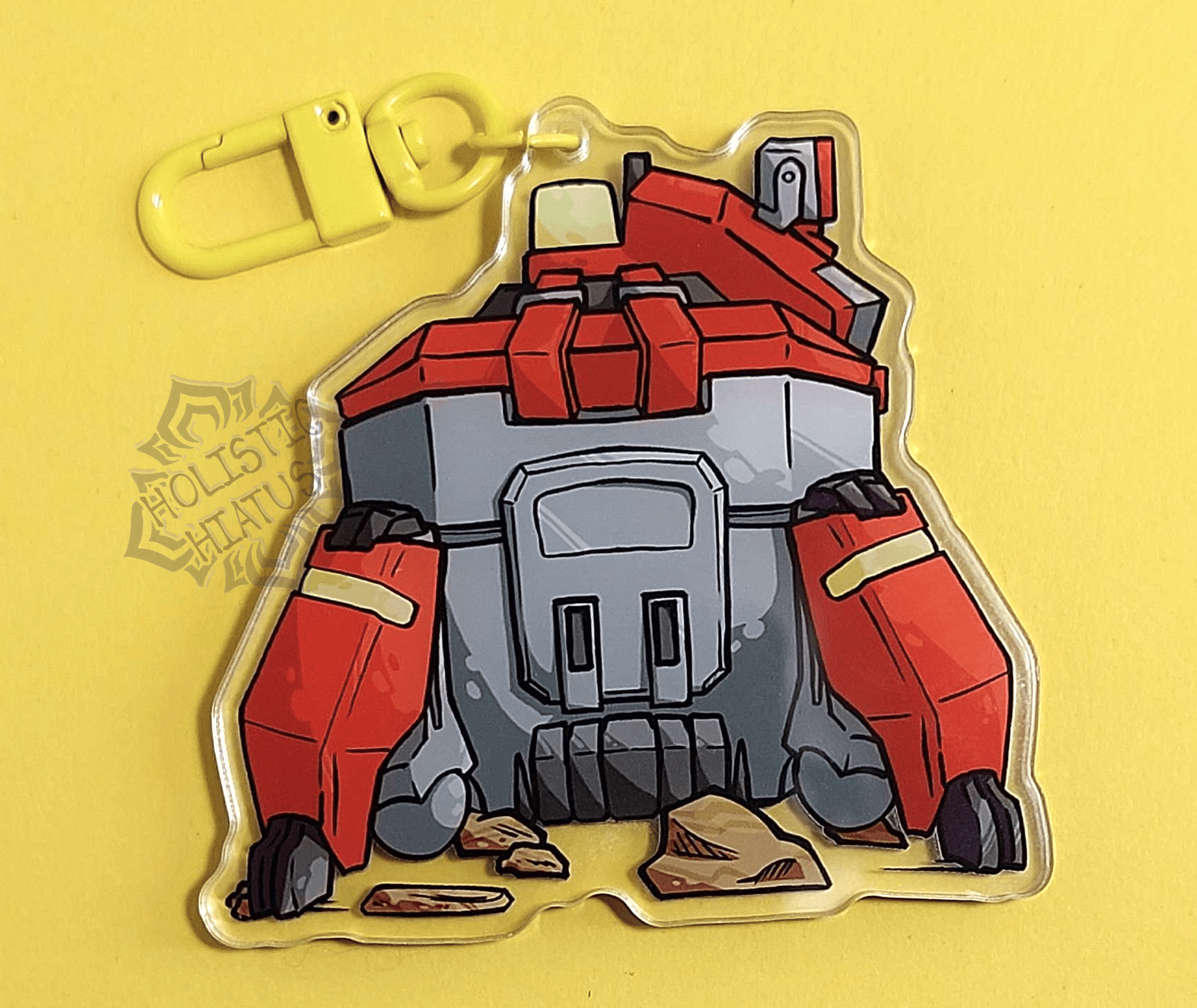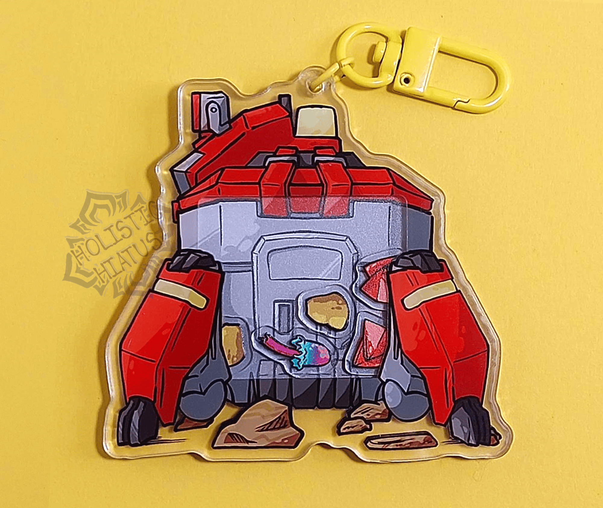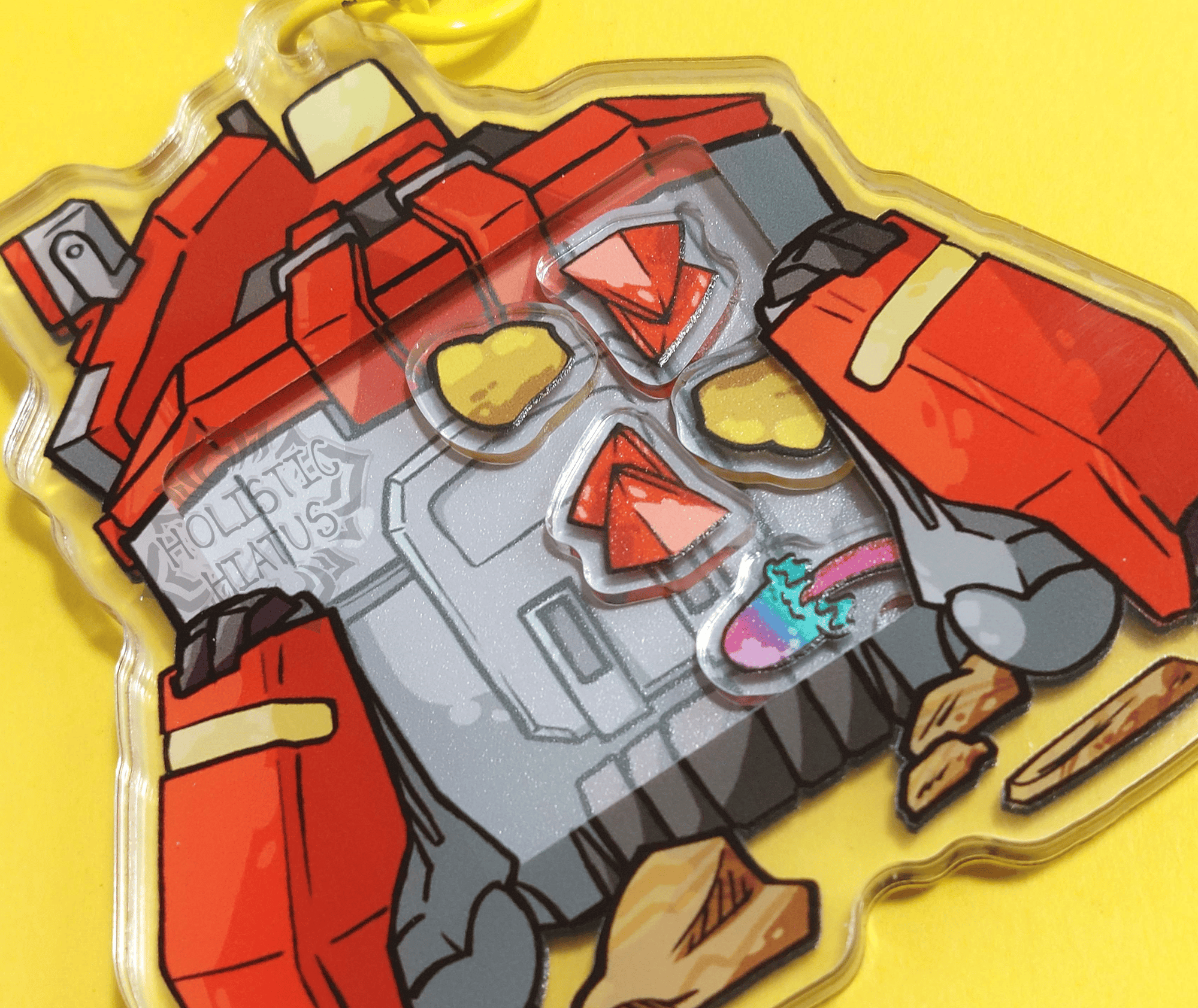 a 3 inch acrylic shaker charm with 5 internal pieces and a yellow lobster clasp