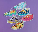 3 inch vinyl stickers in varying pride flag colorations